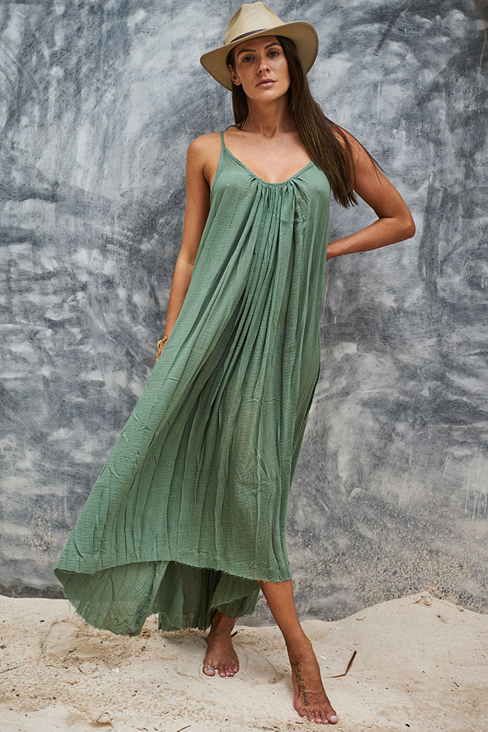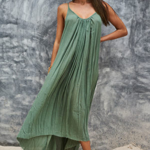 Flowy backless dress, perfect for an everyday look. This classic Omnia garment is made of cotton gauze.